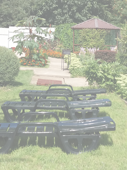 К основному зданию бани примыкает гостевая автостоянка и дворик для отдыха на свежем воздухе.